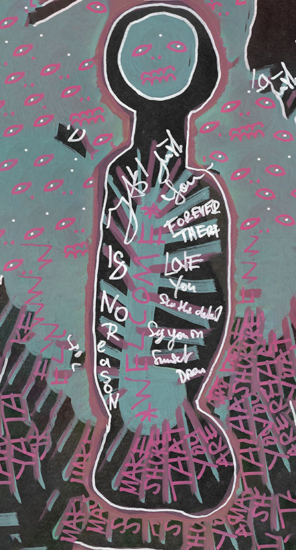 Hybrid Paintings combine traditional art techniques with modern digital technology. By merging paper sketches with digital coloring and design tools, I can experiment with diverse palettes and make creative decisions with greater flexibility. Working in layers allows for in-depth exploration and iteration, while each technique used—from the direct stroke of a pencil to innovative digital tools—enriches my artistic development. My works aim to provoke thought, evoke emotion, and invite viewers into a dialogue that goes beyond mere aesthetics, reflecting the complexity of contemporary life.
