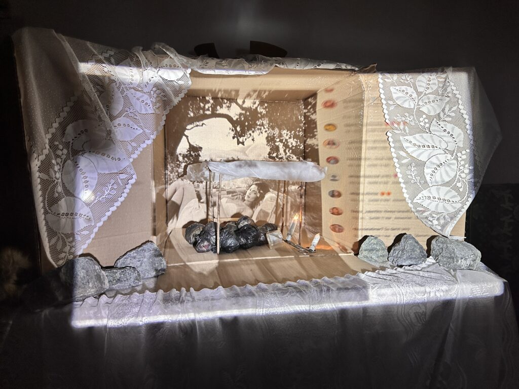 This work is an independent artistic creation that reinterprets and transforms an existing digital image through projection and spatial installation. By taking an image directly from Elon Musk’s Instagram account and projecting it into a miniature diorama, the original content is placed into a new physical and narrative environment, where it is recontextualized and staged differently before being rephotographed. Through this process, the image loses its original digital framework and becomes part of a larger artistic discourse on power, media influence, and constructed realities. The projection technique not only alters the image’s scale and materiality, but also shifts its meaning, questioning how visual culture shapes perception.